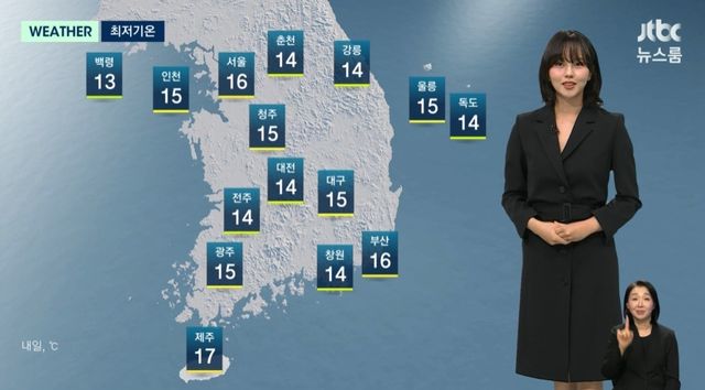 또 "내일 새벽부터 아침 사이 수도권과 충남에는 비가 조금 내릴 예정이고, 수도권은 공기가 종일 탁할 예정"이라고 했다.