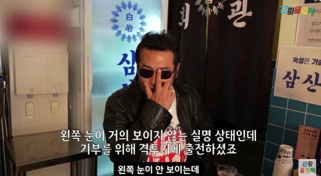 김보성은 왼쪽 눈이 거의 보이지 않는 실명 상태임에도 기부를 위해 격투기에 출전했다 부상 영향으로 안구가 함몰됐다.