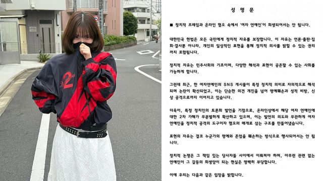 논란이 계속되자 팬덤도 움직였다. 카리나의 팬들은 28일 공식 성명문을 발표하고 “정치적 프레임과 온라인 혐오 속에서 여자 연예인이 희생되어서는 안 된다”고 입장을 밝혔다.