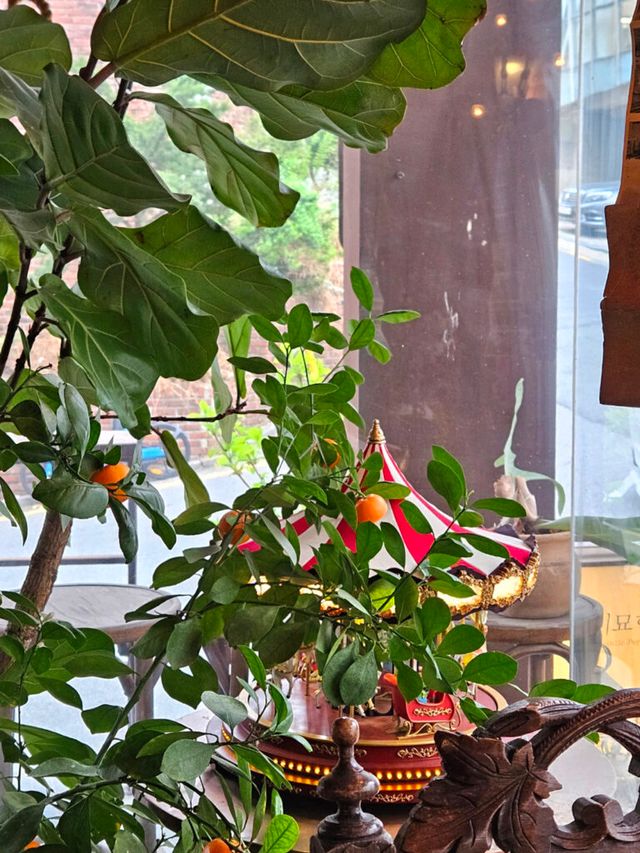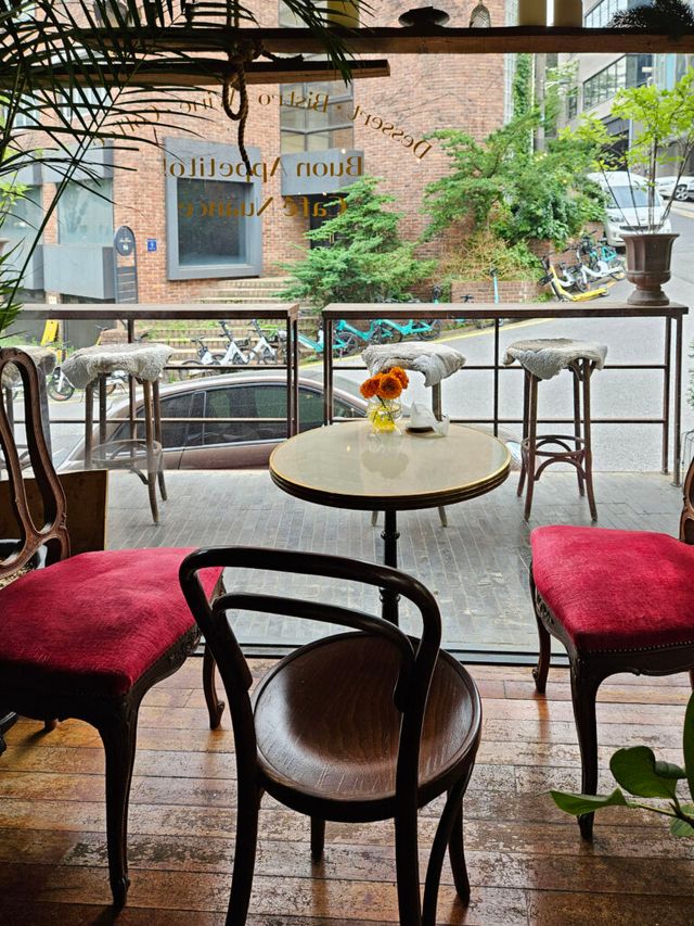 무엇보다 가장 특별한 자리는 바로 ‘테라스석’이다. 초여름의 햇살이 부드럽게 닿는 낮에도 좋지만, 개인적으로는 흐리고 비 오는 날의 테라스를 더 좋아한다. 유리창 너머로 보이는 나무들과 고요한 풍경은 마치 오래된 영화의 한 장면처럼 잔잔하다. 요란한 대화가 필요 없는, 조용히 커피를 마시며 생각에 잠길 수 있는 그런 장소다.