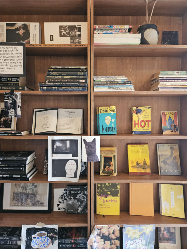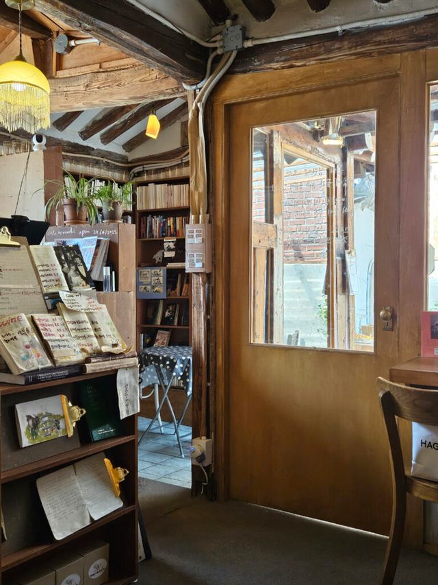 서촌에 들를 때마다 찾게 되는 카페 베란다. 주말에는 웨이팅을 해야 할 때도 있지만, 평일에는 비교적 한적하게 여유를 즐길 수 있다. 입구부터 단정하고 고즈넉한 분위기를 풍기는 베란다는 낮은 조도의 조명과 따뜻한 나무의 질감, 그리고 책장 가득한 책들이 어우러져 따뜻한 느낌을 준다. 소설책, 오래된 교과서, 에세이 등 다양한 책들이 놓여 있는데, 어느 하나도 인위적으로 꾸민 느낌 없이 진짜 ‘누군가의 집’처럼 자연스럽게 구성되어 있다. 마치 누군가의 안락한 서재 같기도 하고, 오래된 친구의 집에 초대받은 느낌이 들기도 한다.