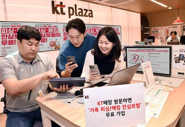 KT는 전국 KT 매장을 방문하는 고객을 대상으로 가족까지 보장되는 '피싱·해킹 안심 보험'을 6개월간 무료로 제공한다고 28일 밝혔다.