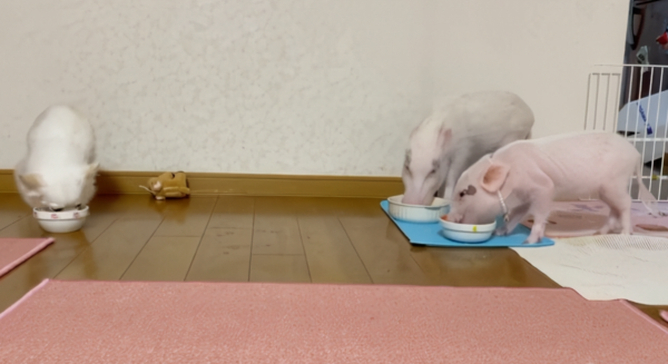 또한 사람 음식은 절대로 주지 말고, 반드시 미니돼지 전용 사료를 먹여서 영양 밸런스를 맞춰주세요.
