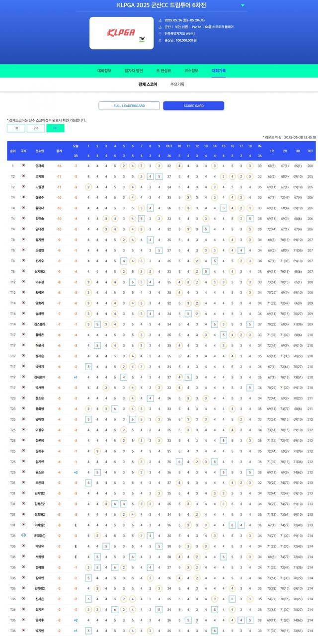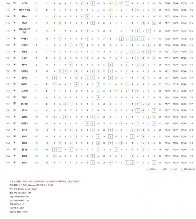 1.안재희 -16(우승), T2.고지원-노원경 -11, T4.장은수-황유나-김민솔-임나경 -10, T8.정지현-조정민-신지우-신지원2 -9, T12.이수정-최예본 -8, T14.양효리-송채민-김스텔라 -7, T17.홍예은-허윤서-정시윤-박예지-김새로미-박서현 -6, T23.정소윤-윤화영-양아연-성은정-김지수-심지연 -4, T31.조은채-김지영2-정희원2-박단유 -3, T36.김아현 -2, T46.손연정-박도은 -1, T52.김서윤2-손예빈 E, T57.김가희 +1, T63.윤서정-김태희 +2, T68.권다원 +3.