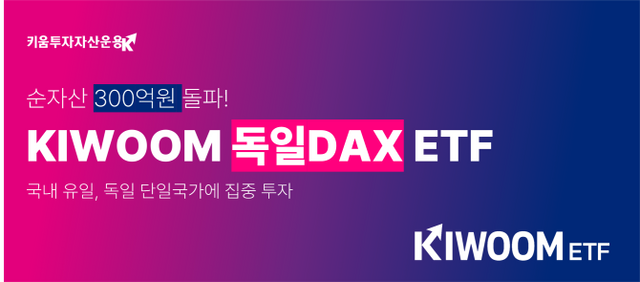 국내 상장 ETF 중 유일하게 독일 단일국가에 집중 투자하는 상장지수펀드(ETF)인 키움투자자산운용의 'KIWOOM 독일DAX ETF'의 순자산(AUM)이 300억원을 돌파했다.