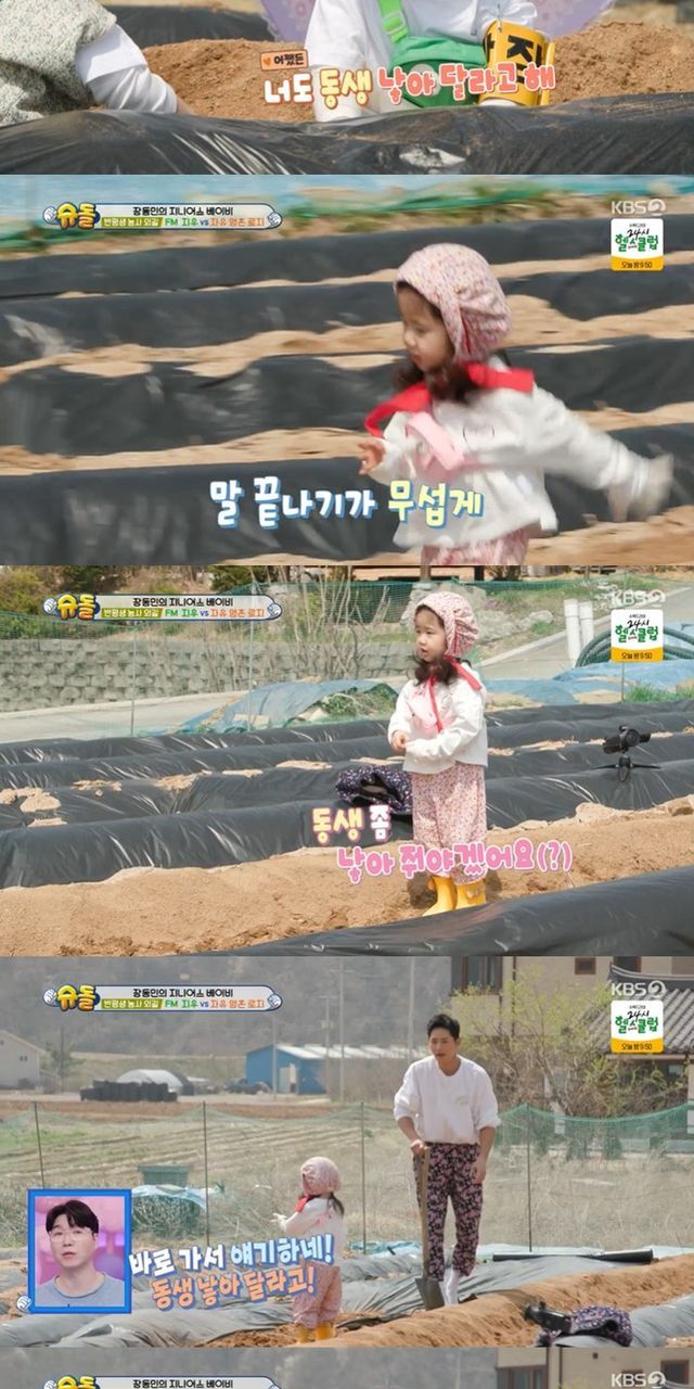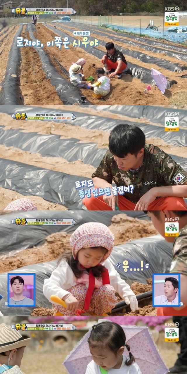 28일 방송된 KBS 2TV '슈퍼맨이 돌아왔다' 575회는 '뛰고 웃고 즐기고' 편으로 장동민-지우 부녀와 오종혁-로지 부녀가 봄맞이 모종 심기를 위해 만났다.