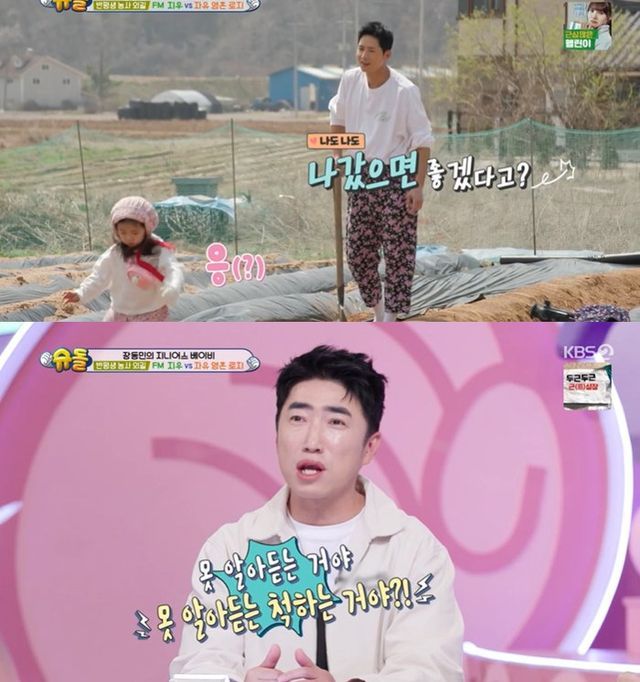딸들의 등장으로 쉬는 시간이 끝난 장동민은 "왜 벌써 일어났냐", "그래 너네 여기서 해라(놀아라)"라며 체념한 모습을 보였다.