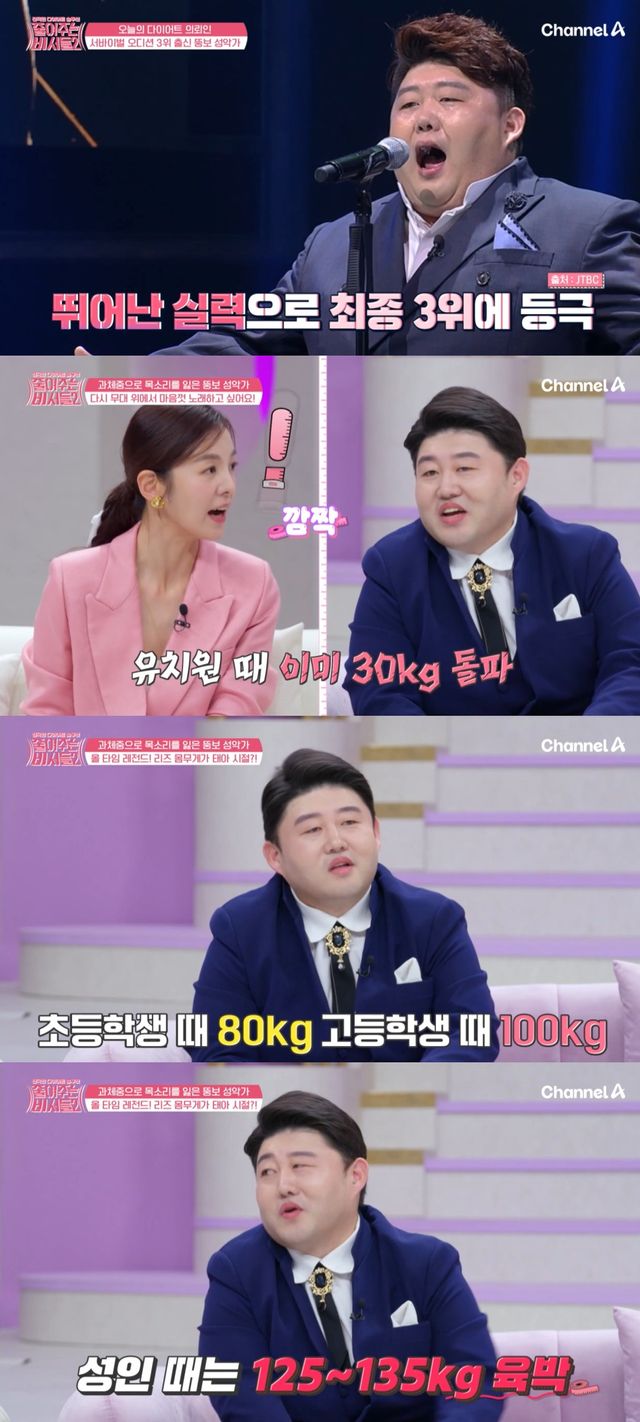 그렇게 그는 음악 경연대회에 나가 3위를 차지했다. 하지만 갑자기 목소리가 나오지 않게 됐고, 불어난 체중 탓에 소리가 안 나오는 근황을 고백했다.