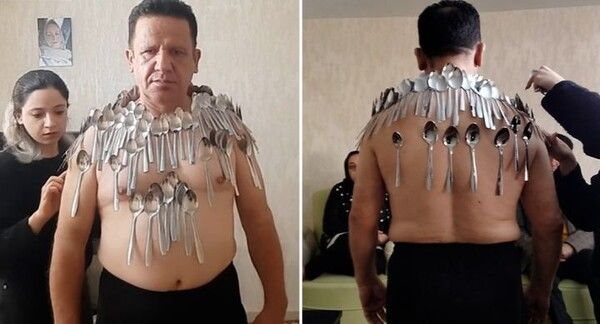 이란의 한 남성이 자신의 맨몸에 96개의 숟가락을 붙는데 성공해 '몸 위에 숟가락 균형 있게 붙이기' 부문 기네스 신기록에 올랐다.