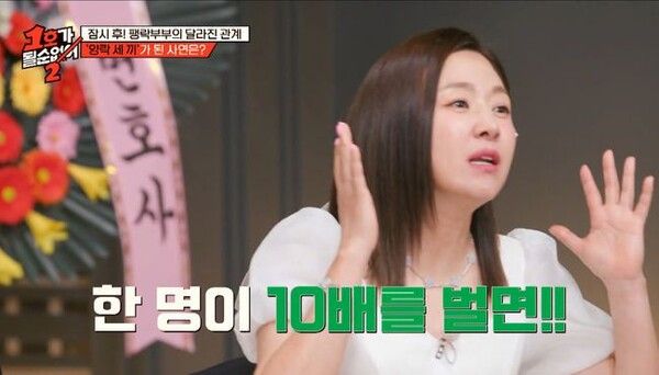 [메디먼트뉴스 김민기 기자] 개그우먼 김지혜가 남편 박준형보다 10배 많은 수입을 올린다고 밝혀 주위를 깜짝 놀라게 했다.