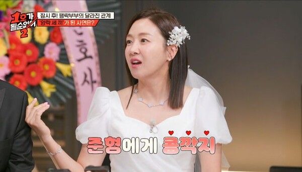 28일 첫 방송된 JTBC ‘1호가 될 순 없어2’에서는 개그우먼 김지혜가 출연, 남편 박준형과의 과거를 회상하며 솔직한 입담을 뽐냈다. 이날 공개된 두 사람의 2005년 결혼 사진에 김지혜는 "너무 상큼하다"라며 20년 전 풋풋했던 자신의 모습에 만족감을 드러냈다.