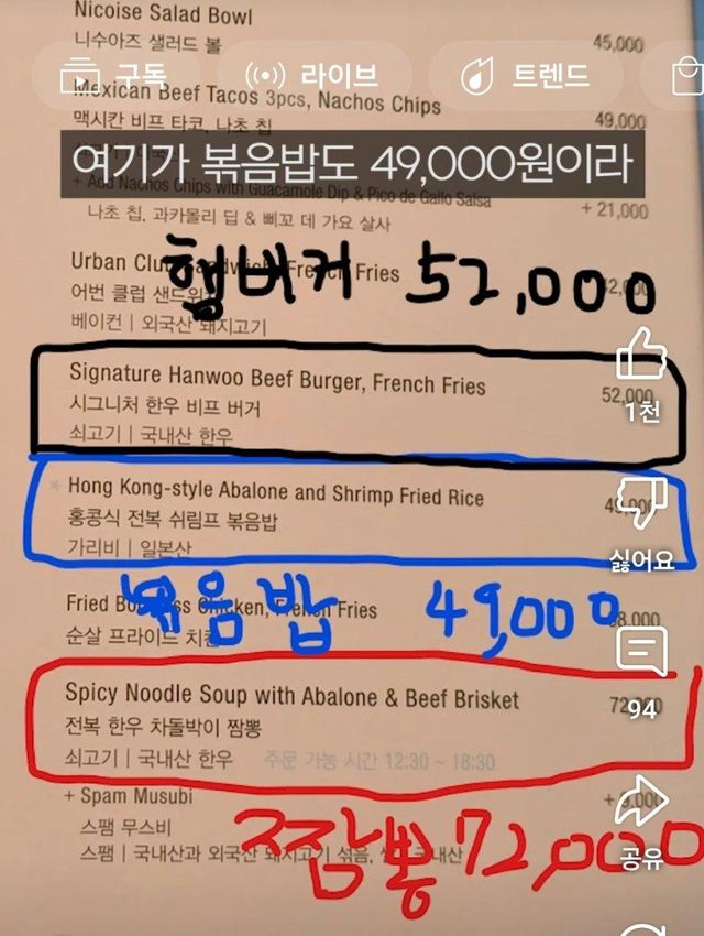 짬뽕 72,000원