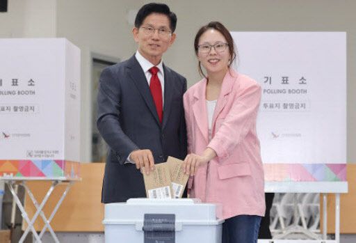 김 후보는 ‘사전투표율이 동시간대 역대 최고치를 기록하고 있다’는 질문에 대해 ”투표율이 높다는 건 그만큼 이번 선거에 대한 관심도가 높은 것 아니겠나“라고 답했다. 딸과 함께 사전투표를 찾은 데 대해선 “딸이 여기 부천에 산다“며 ”딸과 투표장 찾으니 아주 행복하다”고 말했다.