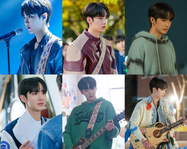 극 초반 하유준은 화려한 비주얼과 강렬한 스타일링으로 케이팝 최고의 밴드 ‘더 크라운’의 멤버였던 사계를 표현하며 이목을 끌었다. 레더 자켓을 활용해 독보적인 아우라를 뽐냈으며, 자신감 있는 눈빛과 카리스마 넘치는 표정으로 캐릭터에 완벽히 녹아들었다.
