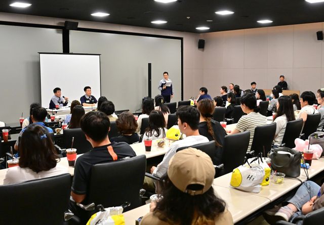 가족들은 버스를 이용해 도장과 프레스 라인 등 공장 생산 시설 전반에 대한 투어를 시작으로 디자인센터에서 자동차 관련 특강을 받았아. 또 생산라인 견학과 노·경 대표 간담회 그리고 외부강사 초청 교양강좌, 레크리에이션, 체험부스 등 다양한 프로그램을 함께 했다.