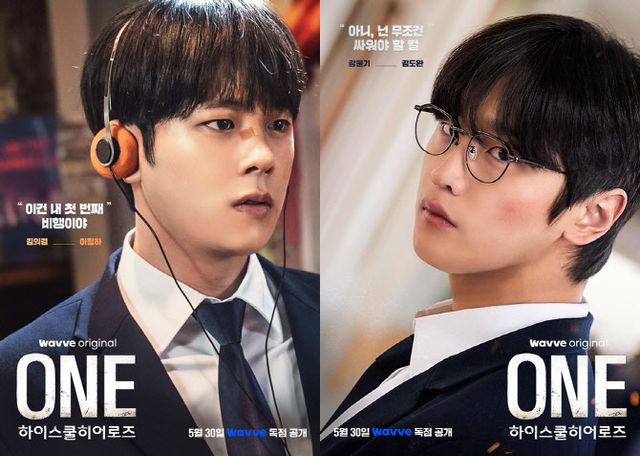 ‘ONE : 하이스쿨 히어로즈’는 아버지의 억압에 시달리던 전교 1등 ‘의겸’(이정하)과 그의 천부적인 싸움 재능을 이용하려는 ‘윤기’(김도완)가 복면을 쓴 ‘하이스쿨 히어로즈’를 결성해 억눌린 분노를 폭발시켜 학교 폭력 서열을 뒤엎는 하이스쿨 액션 드라마.