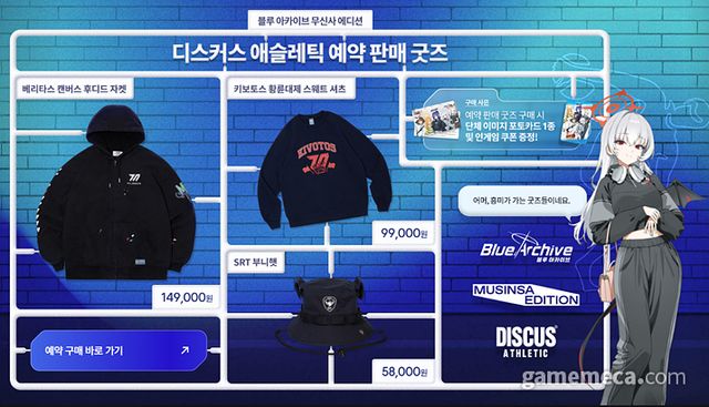 ▲ 무신사 온라인 쇼핑몰에서도 여러 굿즈가 예약 판매된다 (사진출처: 블루 아카이브X무신사 컬래버레이션 이벤트 페이지)