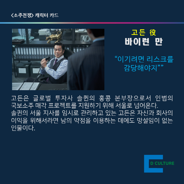 오는 30일 개봉하는 영화 <소주전쟁>을 재미있게 볼 수 있도록, 주요 캐릭터에 대한 카드 뉴스를 제작했다. <편집자 주>