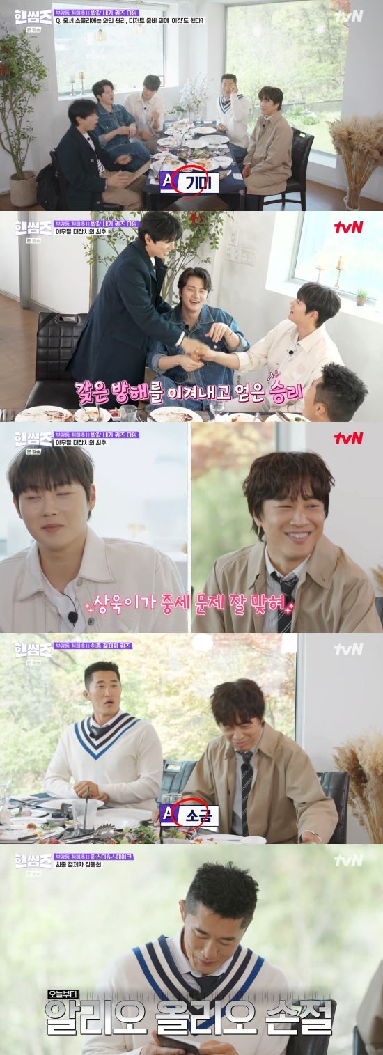 차태현은 정답을 맞혔고, 밥값을 내게 된 김동현은 "나 평생 안 먹는다. 알리오 올리오"라며 발끈했다.