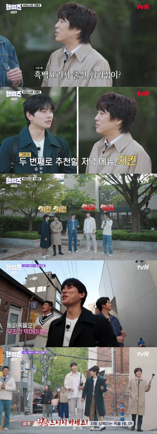 이후 김동현, 신승호, 오상욱은 훠거를 선택했고, 차태현, 이이경은 치킨을 선택했다. 제작진은 훠거집에 먼저 가겠다고 이야기했고, 신승호와 오상욱은 식당에 들어가기 전부터 동파육과 훠거 냄새를 맡고 반가움을 드러냈다.