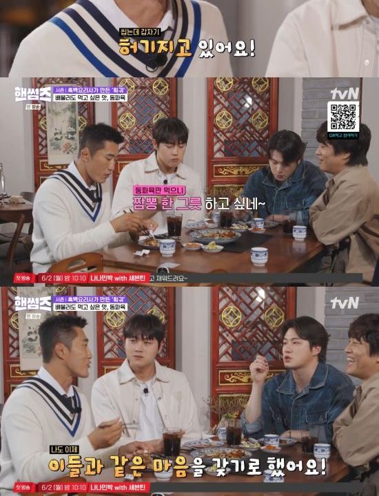 29일 방송된 tvN '핸썸가이즈'(이하 '핸썸즈')에서는 김동현, 신승호, 오상욱이 '흑백요리사'에 출연한 임태훈 셰프가 운영하는 중식당에 방문한 장면이 전파를 탔다.