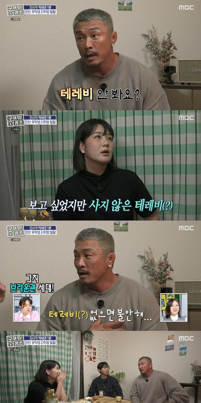 이후 집을 둘러보던 추성훈은 "텔레비전이 없다. 컴퓨터는 있는데. 텔레비전을 안 보냐"고 물으며 의아한 반응을 보였다.