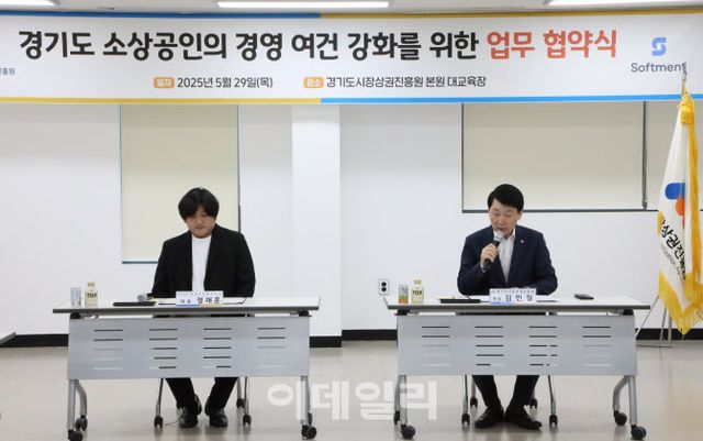김민철 경상원장과 정재훈 소프트먼트 공동대표는 지난 29일 경상원 양평 본원에서 테이블로 가맹점 수수료 혜택과 점포별 맞춤형 마케팅 지원 등을 골자로 한 업무협약을 체결했다. 경상원은 이번 협약에 따라 인건비 상승 등으로 경제적 어려움을 겪고 있는 도내 소상공인에게 비용 절감 효과를 줄 것으로 기대하고 있다.