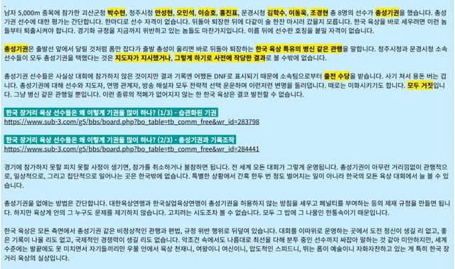 "총성기권" = 스타트 총성이 울리자마자 뒤돌아 퇴장하며 기권하는 한국 중장거리 육상에서 흔히 볼 수 있는 행위