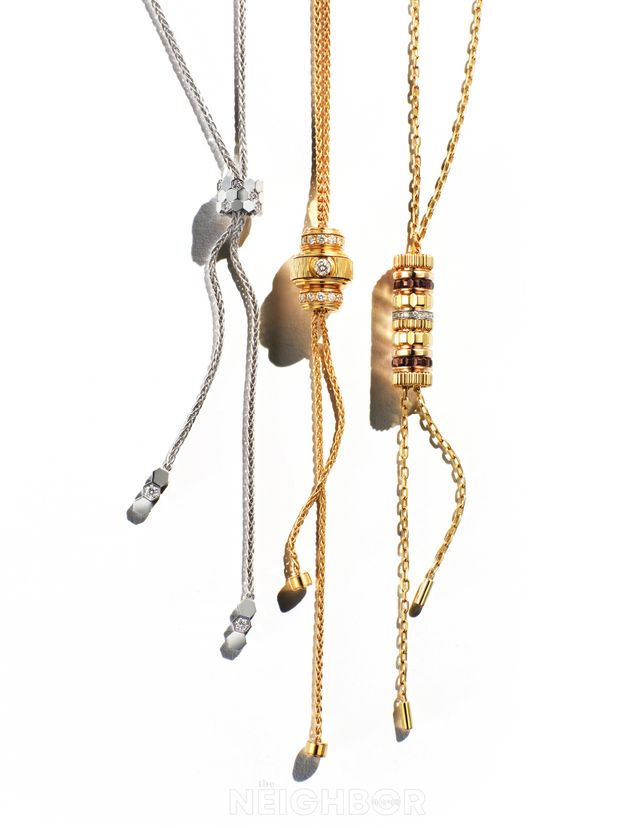 그로그랭, 더블 고드롱, 클루 드 파리, 다이아몬드 라인이 어우러진 콰트로 클래식 볼로 타이 네크리스 1천1백40만원.