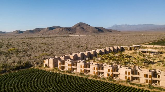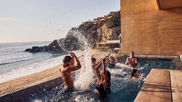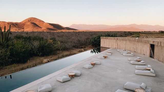 사막과 브루탈리즘 건축, 이보다 강렬한 조합이 또 있을까요? 로스앤젤레스에서 비행기로 약 두 시간 거리, 멕시코 북서부의 작은 마을 ‘토도스 산토스(Todos Santos)’는 산과 바다, 사막과 농촌이 어우러진 독특한 풍경을 자랑합니다. 럭셔리 리조트 ‘파라데로 토도스 산토스(Paradero Todos Santos)’에는 길이 39m의 반달 모양 수영장이 있어요. 거친 콘크리트 건물을 등지고 앉아, 건조 지역의 초목과 선인장, 붉게 물든 산맥을 바라보는 건 생각만 해도 황홀하죠. 이 수영장을 제대로 즐기려면 반나절은 투자해야 합니다. 한낮에는 파라솔 아래에서 마티니나 샴페인을 음미하고, 해가 천천히 기울 무렵까지 물속에 머무르면 어느새 머리 위로 별이 쏟아질 듯 펼쳐지니까요. 몸을 녹일 수 있는 화덕도 준비되어 있어 기온이 급격히 떨어져도 걱정 없어요.