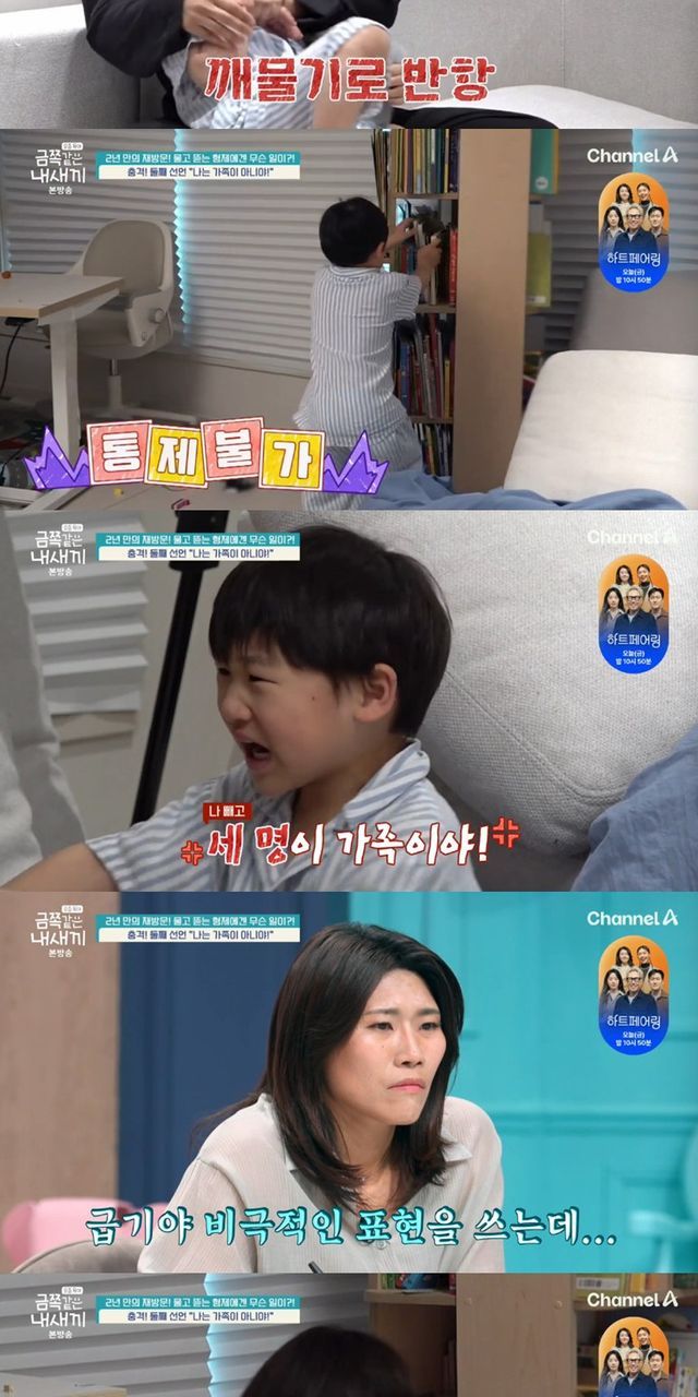 특히 둘째는 "(나 빼고) 세 명이 가족이다"라며 극단적인 표현을 써 모두를 깜짝 놀라게 했다. 어머니가 다치든 말든 몸을 휘두르는 둘째에 어머니는 "하지 말라고 했다. 위험하다고"라며 "세 명 가족 아니다. 네 명이 가족이다"라고 덧붙였다.