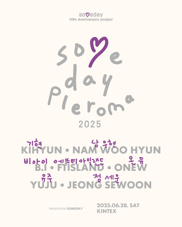 페스티벌 관계자는 "10주년 기념 첫 프로젝트 썸데이 플레로마 2025는 여름의 시작점에서 습하고 더운 날씨에 구애받지 않는 실내에서 아티스트들의 무대를 보다 쾌적하게 즐길 수 있도록 준비하고 있다"며 "야외에서의 페스티벌과는 또 다른 연출과 구성으로 꾸며진 무대를 선보일 예정인 만큼 음악을 사랑하고 무대를 즐길 줄 아는 썸데이 관객들이 낭만과 감성을 가득 충전해가는 시간을 보내길 바란다"고 전했다.