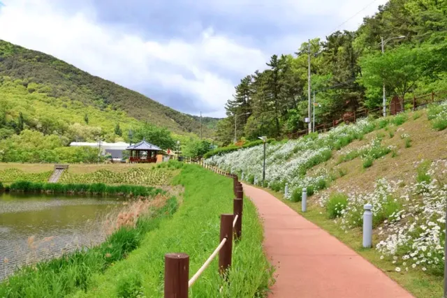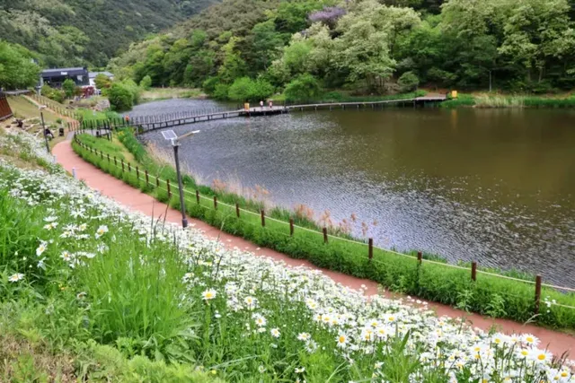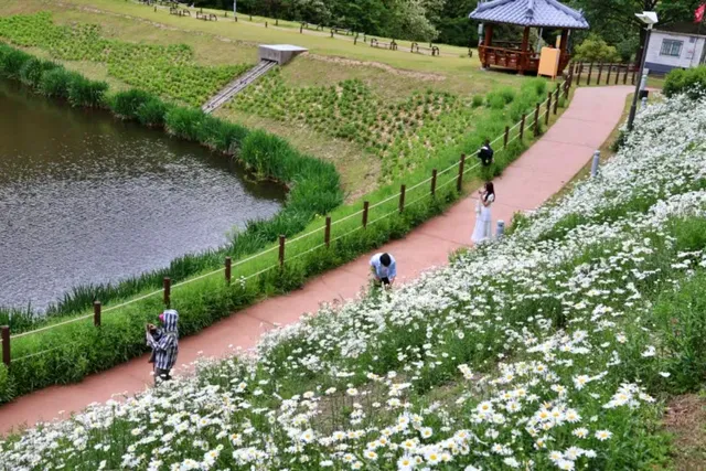 한편, 매년 샤스타데이지의 밀도나 위치는 다를 수 있어, 공원 전체가 샤스타데이지로 뒤덮인 풍경을 기대한다면 실망할 수도 있습니다. 그러나 초입부의 군락은 여전히 매력적이며, 대덕지 연못과 함께 사진을 찍으면 인생 샷을 남기기에 손색이 없습니다.