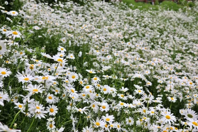 5월이 되면 대구 수성구의 진밭골산림공원은 아름다운 샤스타데이지로 가득 차 연인과 가족 방문객을 불러 모읍니다. 봄에는 겹벚꽃과 철쭉으로 유명했던 이곳이 이번에는 초여름의 상징인 샤스타데이지로 새로운 분위기를 연출합니다. 이 꽃은 ‘계란꽃’이라는 별명으로도 유명합니다.
