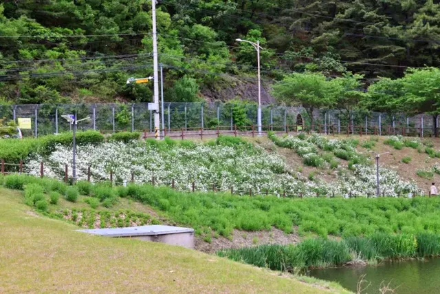 진밭골에서는 샤스타데이지 뿐만 아니라 다양한 식물과 아름다운 자연 경관도 감상할 수 있습니다. 특히 아카시아 꽃의 진한 향이 바람을 타고 퍼지며, 오전 시간대에는 이 향이 더욱 짙게 느껴져 방문객들에게 상쾌한 기분을 선사합니다.