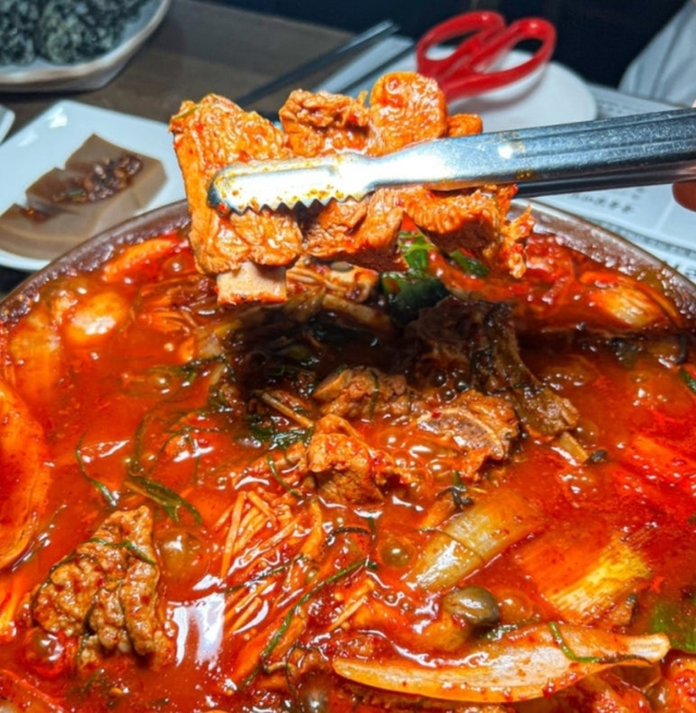여기의 대표 요리는 ‘떠먹는 갈비찜’이다. 보통의 갈비찜과는 다르게 국물이 자작하여, 찌개처럼 끓일수록 매콤하고 깊은 맛이 난다. 고추기름이 올라간 국물에 건더기를 담가 한입 먹으면 그 매콤한 맛이 입안을 사로잡는다.