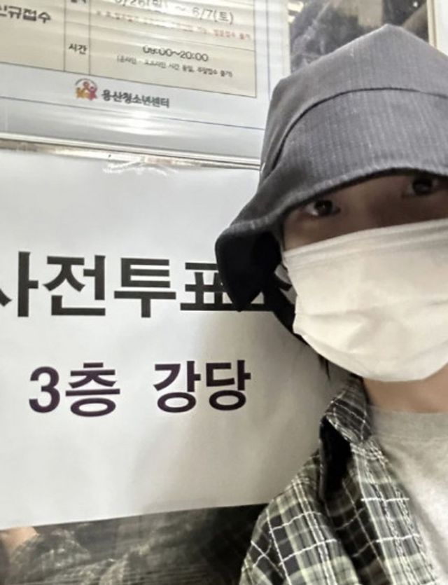 [TV리포트 = 하수나 기자] 가수 겸 배우 아이유가 무채색 옷과 모자를 쓴 모습으로 제 21대 대통령 선거 사전 투표를 인증했다.
