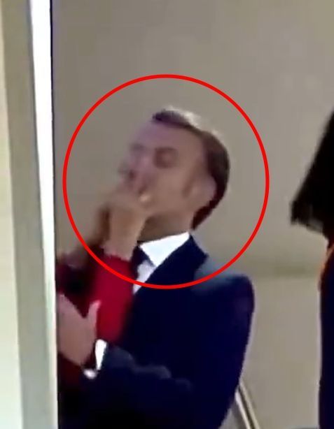 마크롱 대통령은 놀라면서도 문이 열린 것을 확인하고, 아무 일도 없었다는 듯 취재진을 향해 손을 흔들었다.