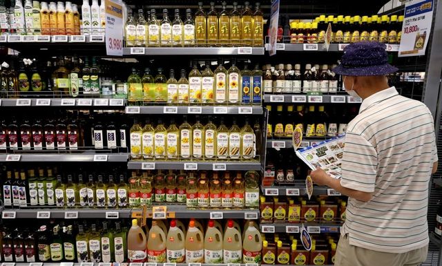 마트 식용유 코너에서 무엇을 살지 고민하는 시민의 모습 / 뉴스1