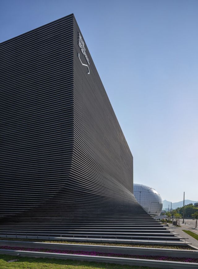 직선과 곡선이 조화를 이루는 독특한 외관 디자인으로 개관 전부터 이목을 끌었던 서울시립 사진미술관은 2019년 공개 공모를 통해 선정된 오스트리아 건축가 믈라덴 야드리치(Mladen Jadric)와 한국의 건축가 윤근주(일구구공도시건축 대표)의 협업으로 탄생했습니다. 두 건축가는 사진의 최소 단위인 ‘픽셀’을 모티프 삼아, 건물 외벽을 불규칙한 직사각형 모듈이 층층이 쌓인 형태로 디자인했는데요. 이 외벽은 반사와 투과가 가능한 소재로 마감되어, 시간과 빛의 변화에 따라 색이 달라지는 특성을 지닙니다. 마치 사진이 빛을 포착하고 흘러가는 시간을 기록하듯 건물 자체가 사진의 작동 방식을 시각적으로 구현한 셈이죠.
