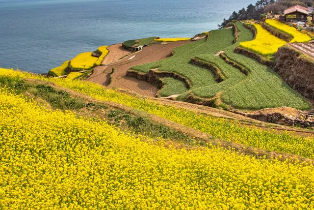 마을 초입에 위치한 다랭이카페 전망대는 최고의 포토 스폿으로 유명합니다. 여기에서는 푸른 논과 바다의 경계를 볼 수 있어 인생샷을 남기기에 제격입니다. 마을 곳곳에 그려진 벽화와 느긋한 고양이들도 소소한 즐거움을 줍니다.