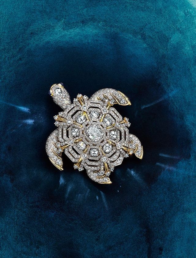 」화려한 다이아몬드 세팅과 정교한 골드 디테일이 도드라지는 챕터. 바다거북 등딱지의 기하학 패턴을 장인들의 섬세한 인그레이빙 작업으로 완성했다. 특히 펜던트는 독특한 탈착 메커니즘을 갖춰 브로치로도 착용이 가능한 것이 특징. 육지에서 바다로 이어지는 거북의 여정을 은유적으로 표현했다.