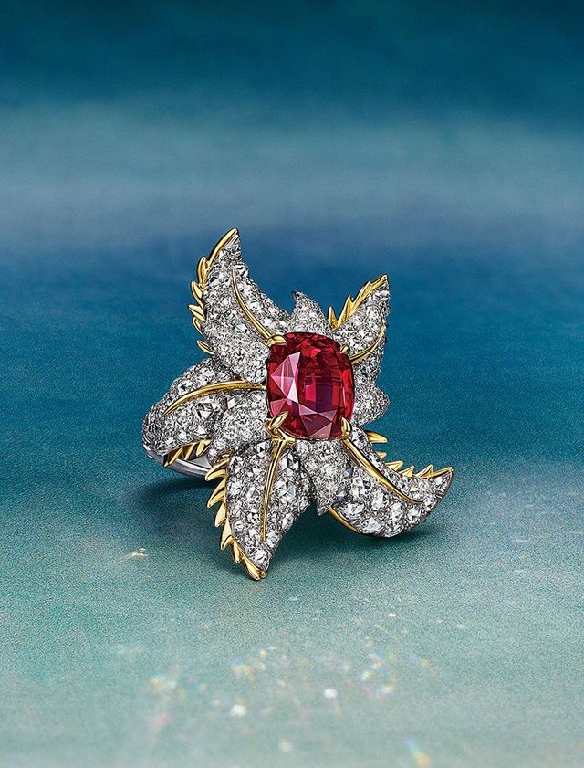 」불가사리의 특징적인 실루엣을 해체하고 재구성해 하이 주얼리로 재탄생시켰다. 독특한 커팅을 활용한 조형적인 아름다움이 돋보이며, 모잠비크산 루비를 18K 옐로 골드, 로즈 컷 다이아몬드, 파베 세팅 다이아몬드와 세팅해 유려하면서도 예술적인 디자인을 선보인다.