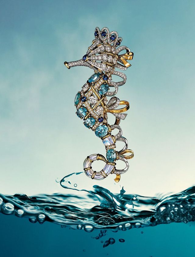 」쟌 슐럼버제가 1968년 제작한 아이코닉 브로치에서 영감을 받은 해마. 지르콘이나 사파이어 같은 유색 스톤을 정교하게 세팅해 풍성한 질감과 대비를 강조했다. 메인 피스인 블루 지르콘 해마 브로치는 플래티넘과 옐로 골드, 총 25캐럿이 넘는 사파이어와 지르콘, 문스톤, 다이아몬드로 완성되어 화려한 생동감을 불어넣는다.