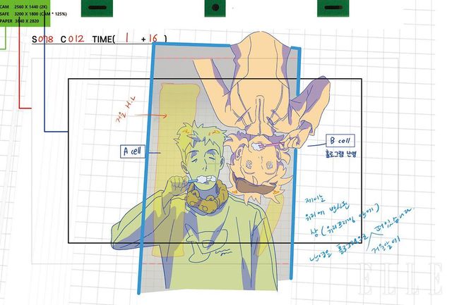 뿌듯하다(웃음). 맞다. 배우들의 연기나 동선을 참고하는 실사 촬영을 진행했다. 사실 실사 영상이 애니메이팅의 레퍼런스로 사용되는 것은 디즈니나 픽사 같은 할리우드 애니메이션에서는 매우 익숙한 시도다. 몇 년 전 넷플릭스 1위를 차지한 애니메이션 〈아케인〉 같은 작품도 실제 액팅 영상을 참고하는 과정을 거쳤다. 훌륭한 배우들과 함께하니까 그들의 섬세하고 폭발적인 연기력을 담고 싶은 마음이 자연스럽게 들더라. 연기 전문가가 아닌 내가 애니메이팅을 상상하기보다 배우들의 액션을 참고하는 편이 무조건 더 좋은 결정이라는 확신이 있었다.