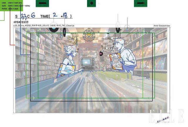 인터뷰 전 미리 보내 준 러프 스케치들을 보니 한강, 성수동 편집 숍, 을지로의 음반 가게 같은 배경이 자연스럽게 등장하더라