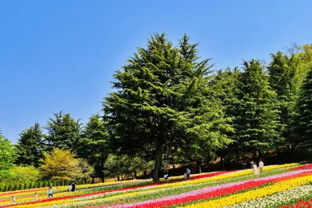 다양한 색상의 튤립이 리듬감 있게 배치되어 있는 정원은 산책로를 따라 조성되어 마치 유럽 정원에 온 듯한 느낌을 줍니다. 사진 촬영을 하지 않고는 지나칠 수 없는 멋진 장면들이 이어집니다.