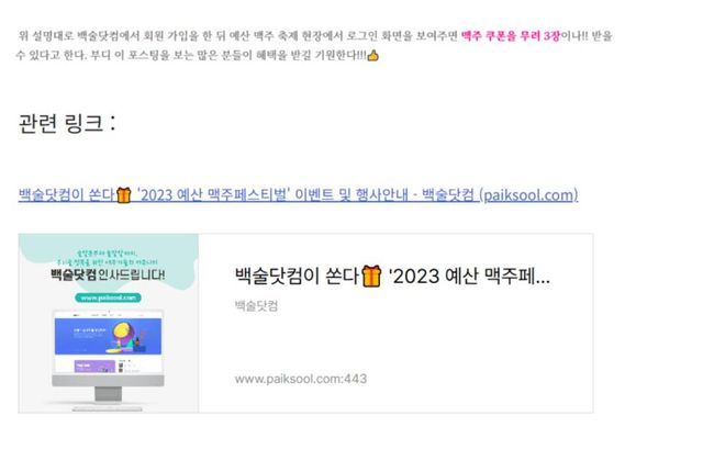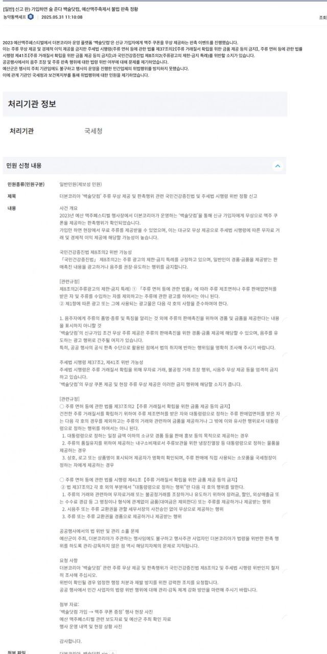 세무서장 허가 없는 주류 교환 쿠폰이나 증정 행사는 불법임