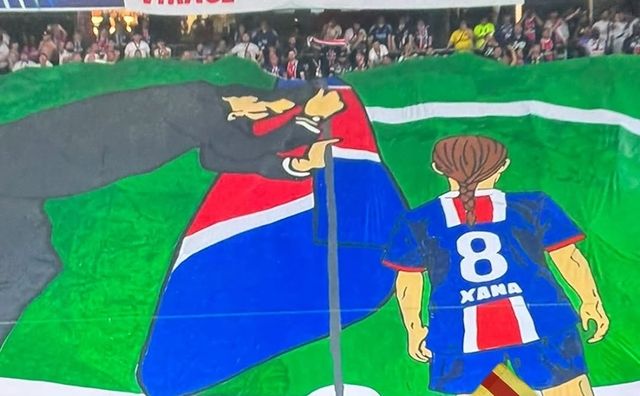 해당 현수막에는 2015년 바르셀로나 감독 시절, 엔리케 감독과 자나가 함께 챔피언스리그 우승 후 경기장에 깃발을 꽂던 장면을 재현한 것이다.