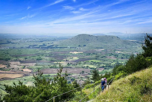 경사가 완만하여 천천히 올라가도 1시간 내에 정상에 닿을 수 있습니다. 정상에서의 전망은 유채꽃 평야와 푸른 해안선을 한눈에 담을 수 있어 인상적입니다.